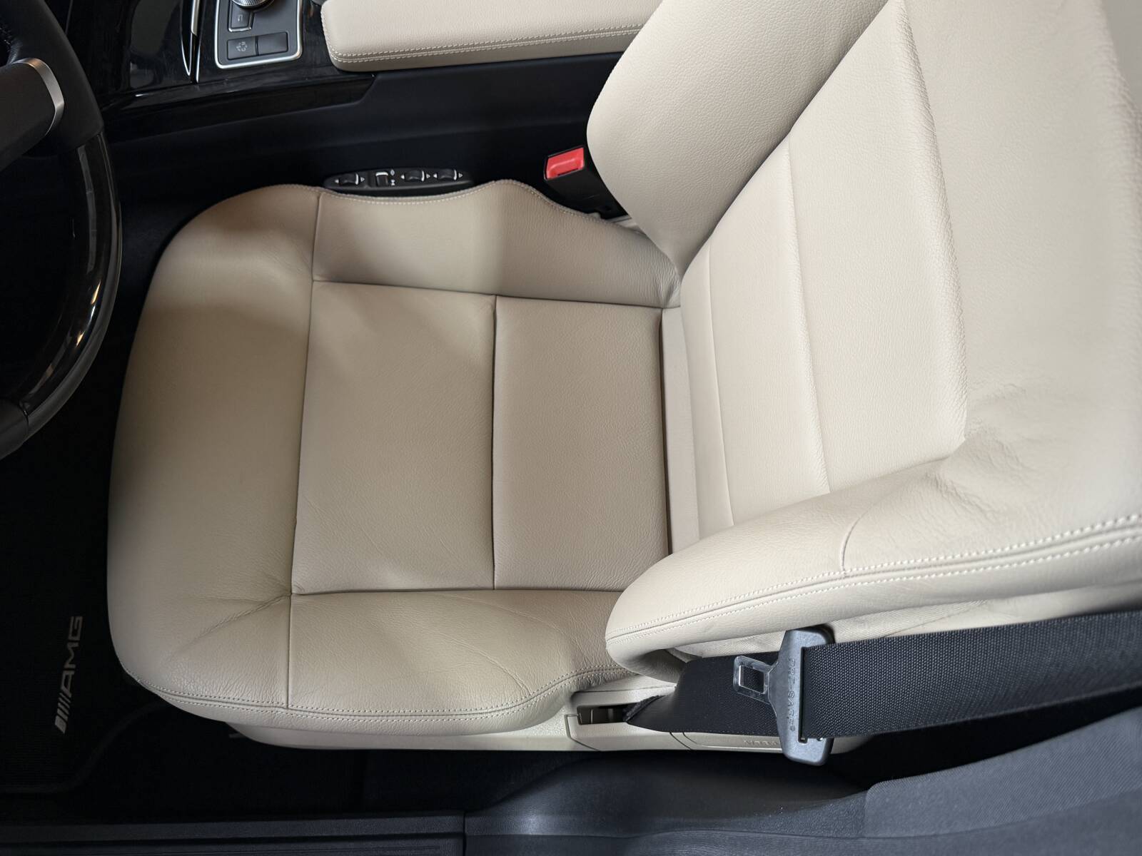 Dit specifieke exemplaar werd gevonden in Duitsland en is uitzonderlijk smaakvol samengesteld in Indiumgrijs metallic, gecombineerd met beige nappaleder en voorzien van het AMG-pakket.